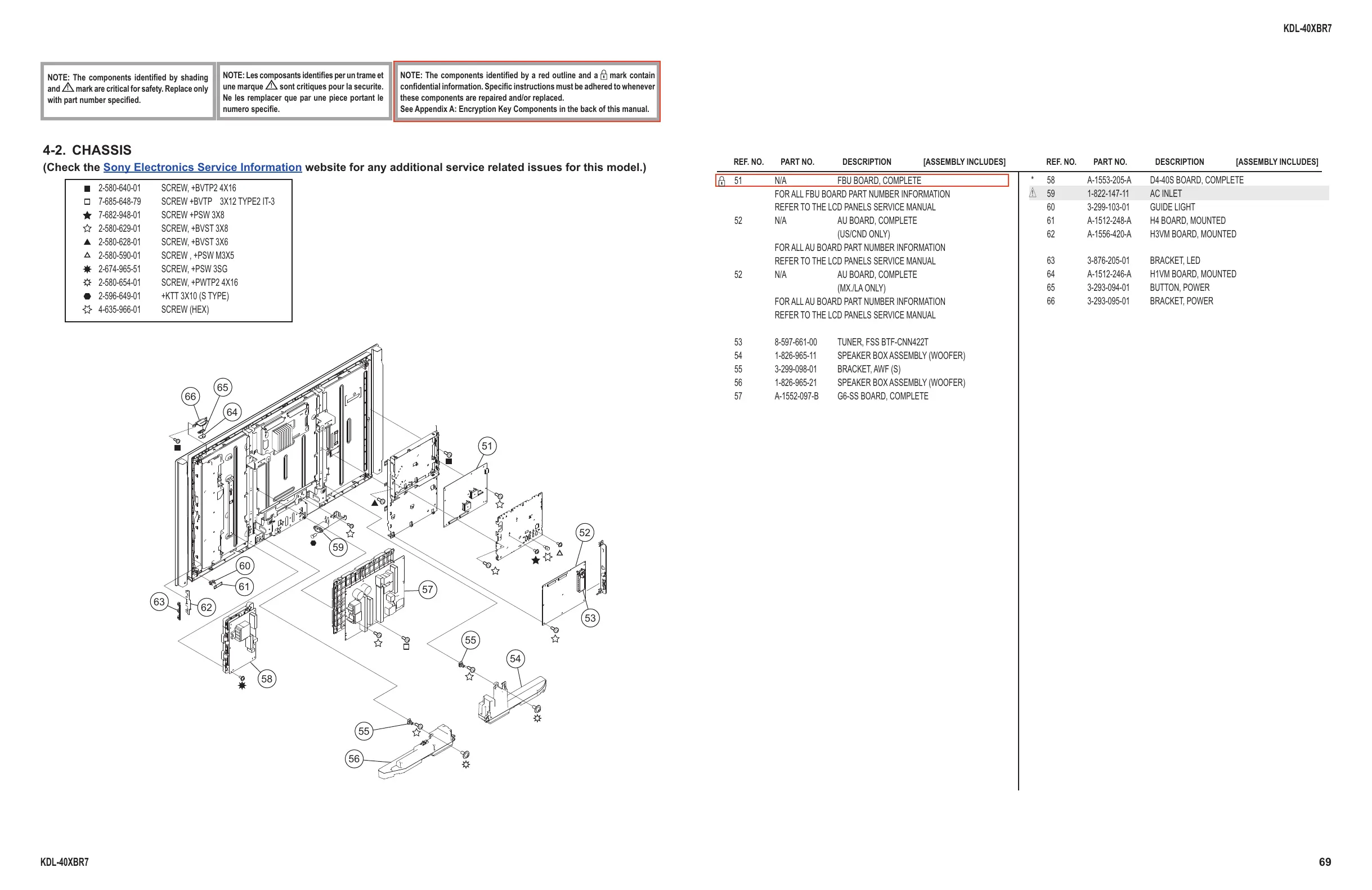 (Check the Sony Electronics Service Information website for any additional service related issues for this model.)