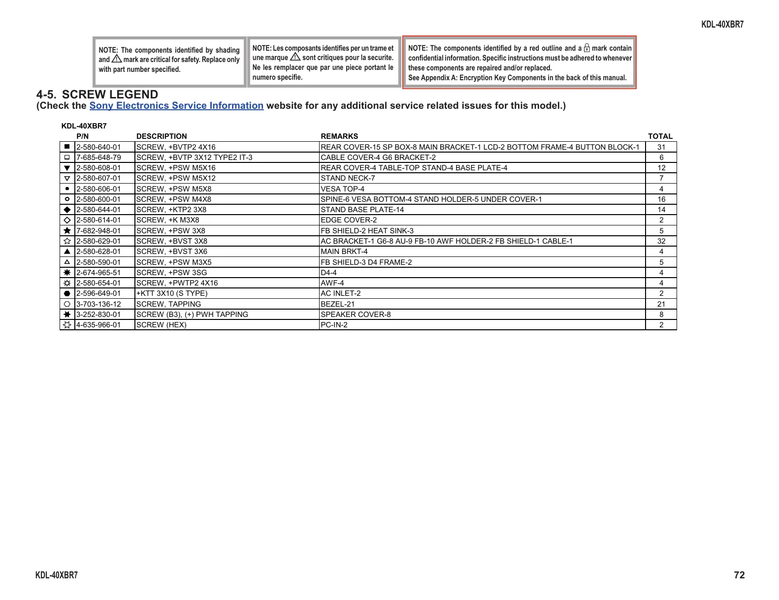 4-5. SCREW LEGEND