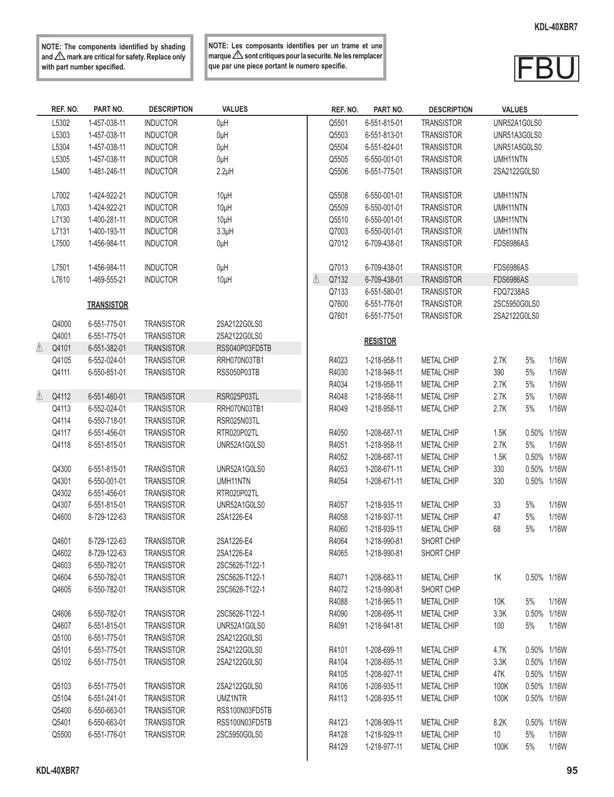 REF. NO. PART NO. DESCRIPTION VALUES