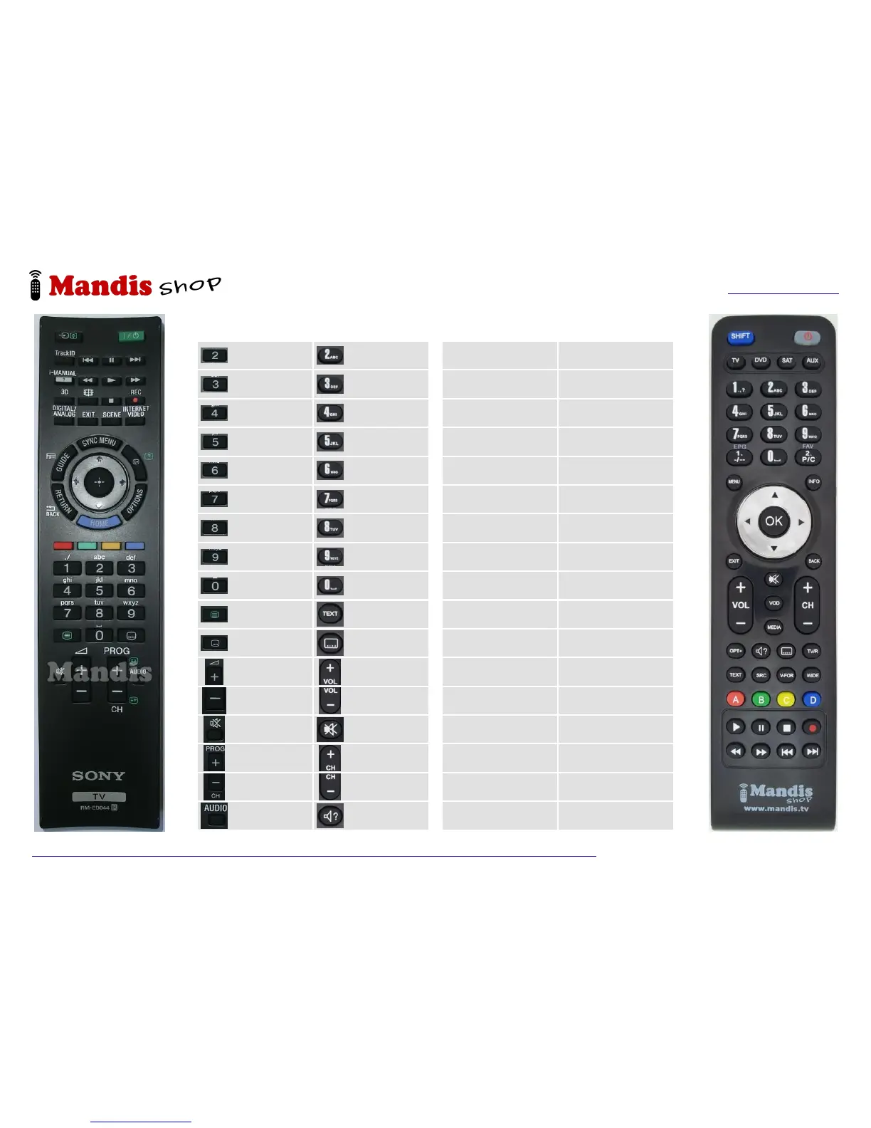 Pag. 2 / 2https://mandos-a-distancia.es/en/Sony/962182-79436-replacement-remote-control-for-Sony-RM-ED044-148947511.html