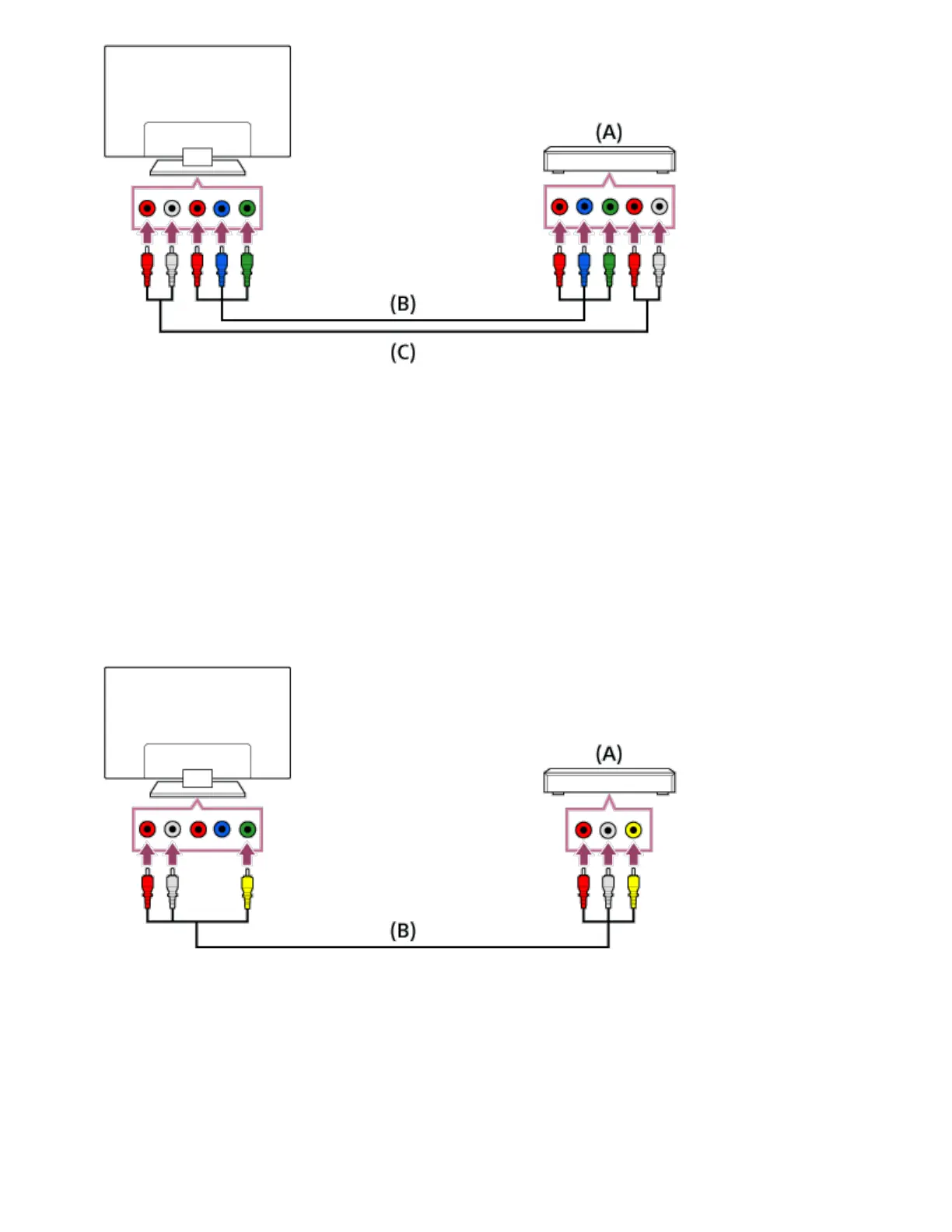 (B) Component video cable (not supplied)