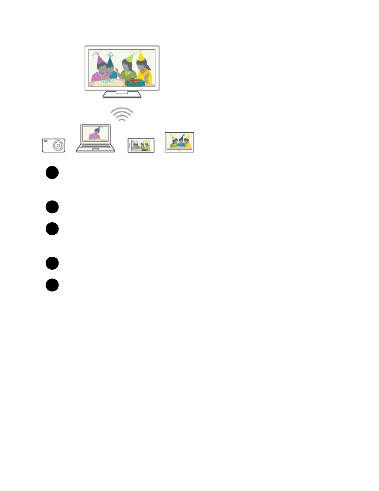 Operate the Wi-Fi Direct/Wi-Fi device to connect with the TV.
