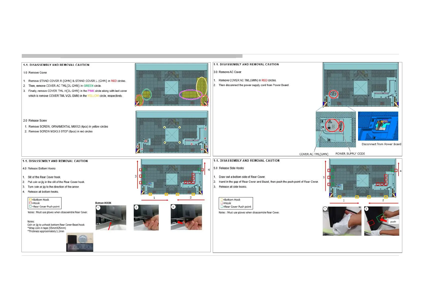 DISSASSEMBLY AND REMOVAL CAUTION 65”