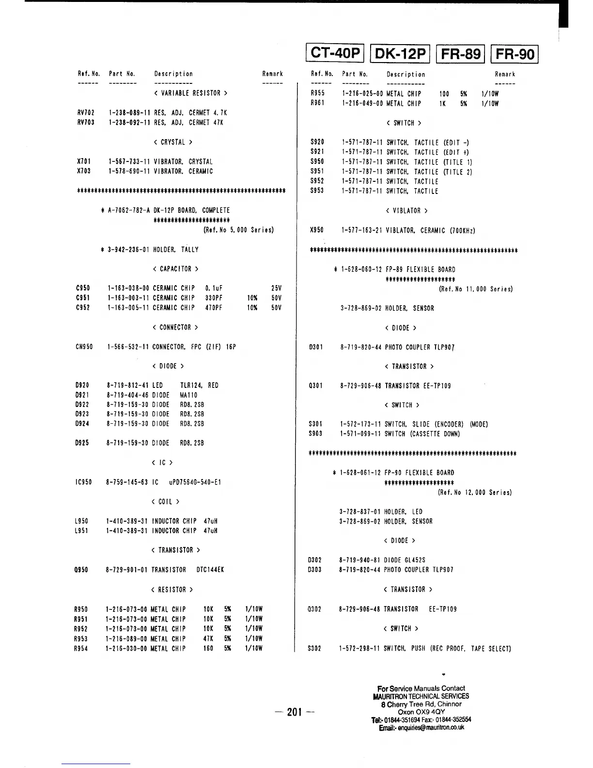 Sony RMT-502 - CT-40 P Board Parts