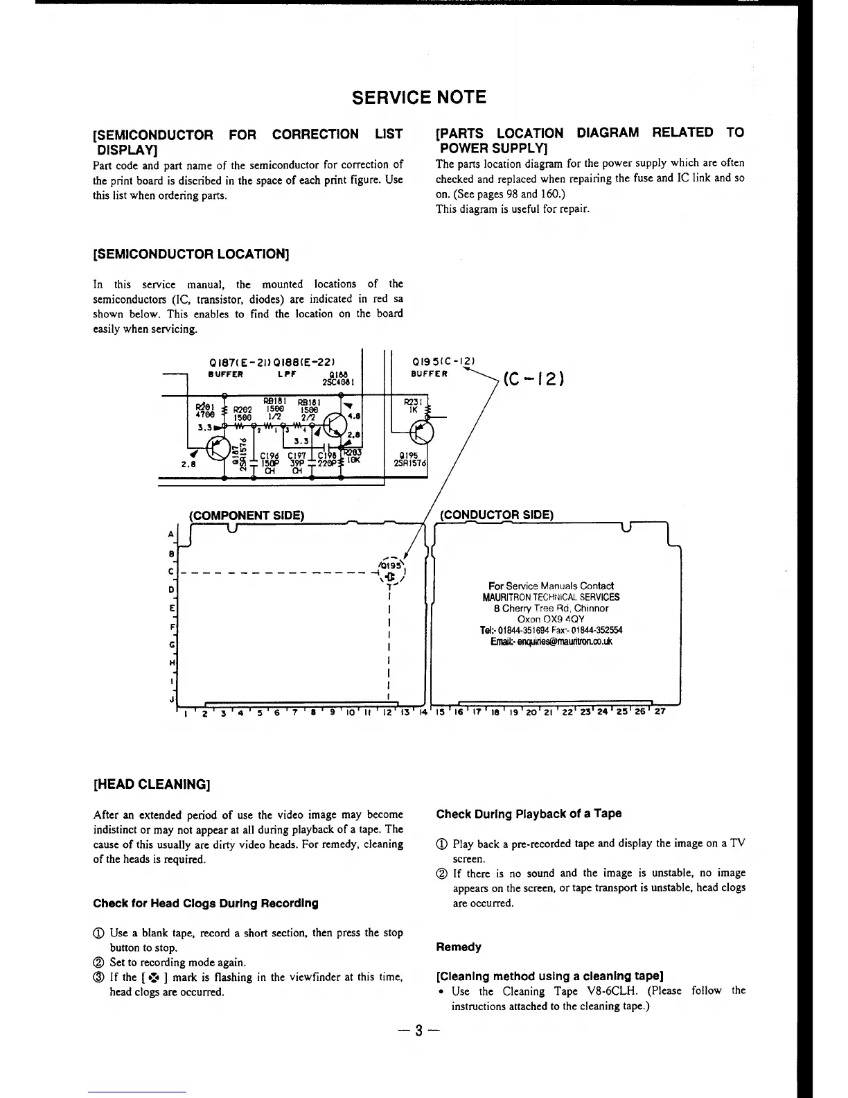 Sony RMT-502 - Service Notes and Locations; Semiconductor Correction List; Semiconductor Location; Head Cleaning Instructions