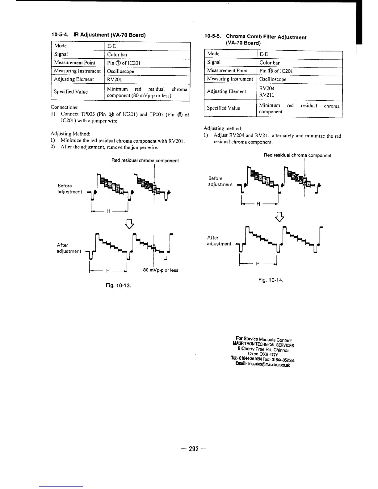Sony RMT-502 - IR Adjustment (VA-70 Board); Chroma Comb Filter Adjustment (VA-70 Board)
