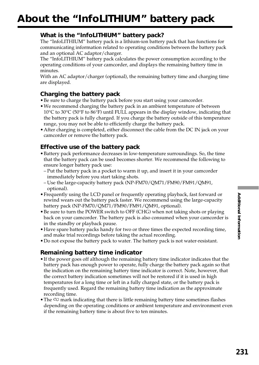 About the “InfoLITHIUM” battery pack