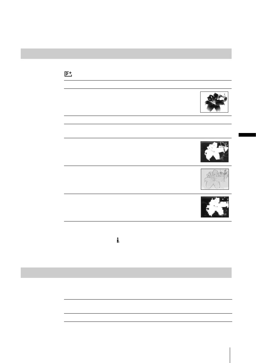 B&W Select to record/play the picture appearing in monochrome (black-