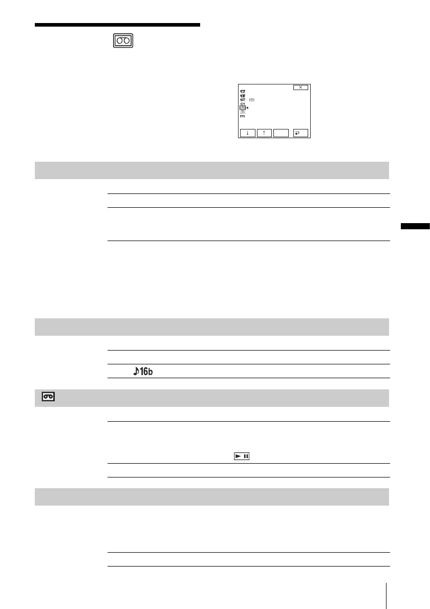 camcorder. The screen shows the items you can
