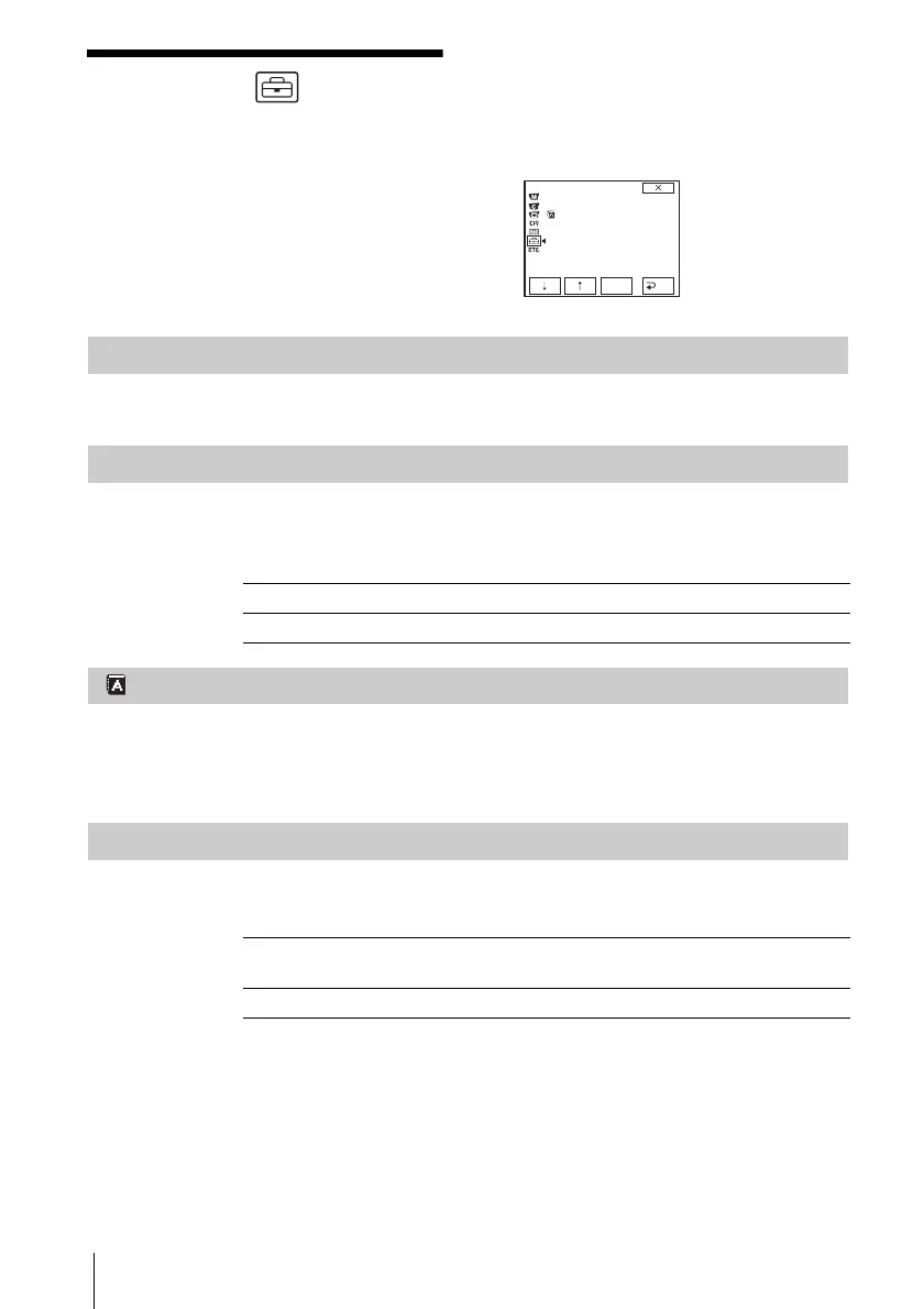 MENU menu. To select items, see “Changing
