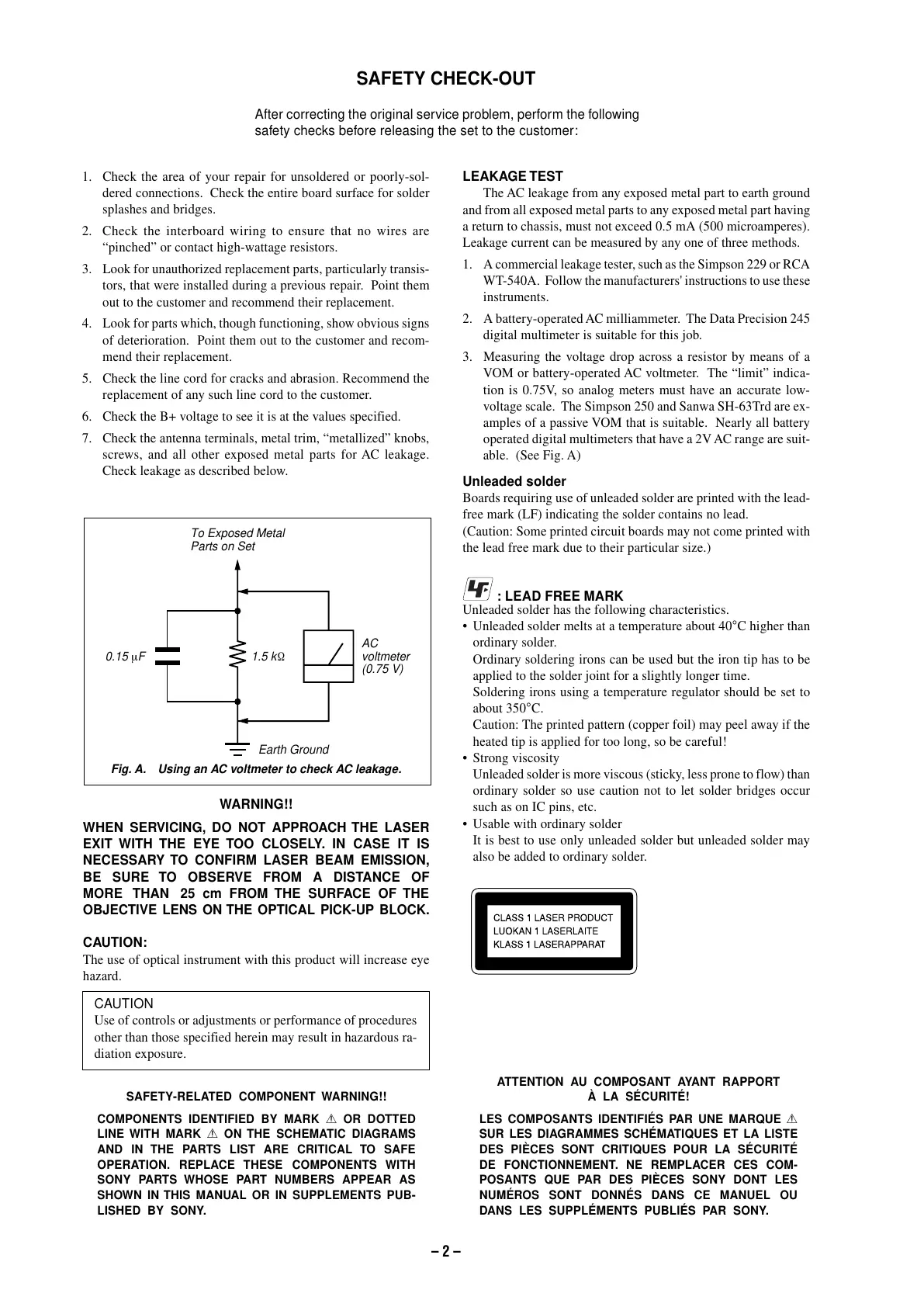 Fig. A. Using an AC voltmeter to check AC leakage.