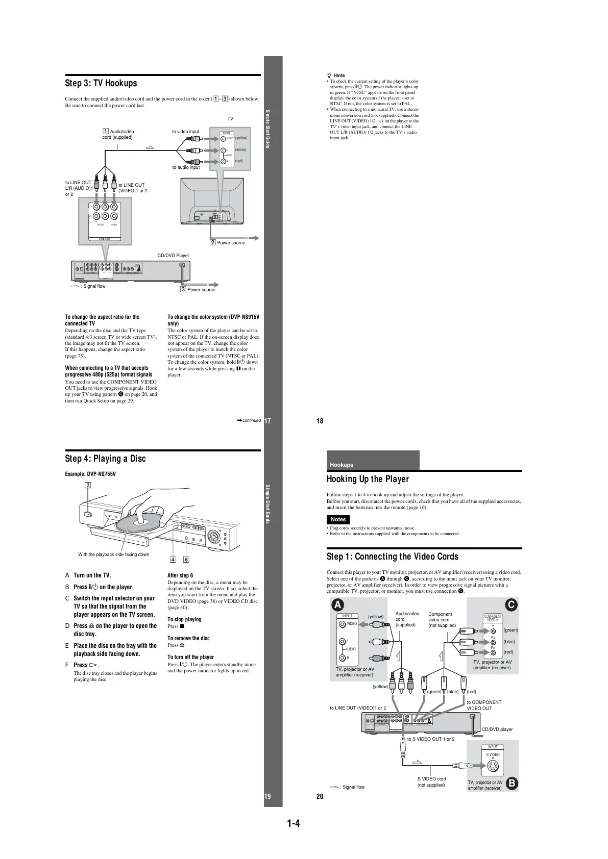 Follow steps 1 to 4 to hook up and adjust the settings of the player.
