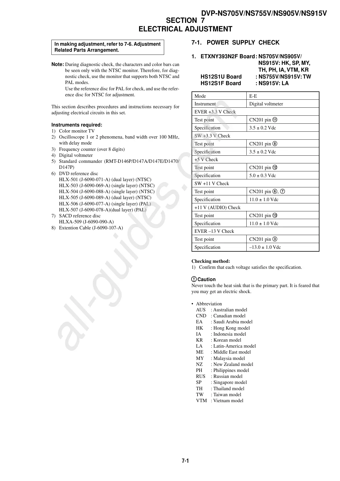 7-1. POWER SUPPLY CHECK