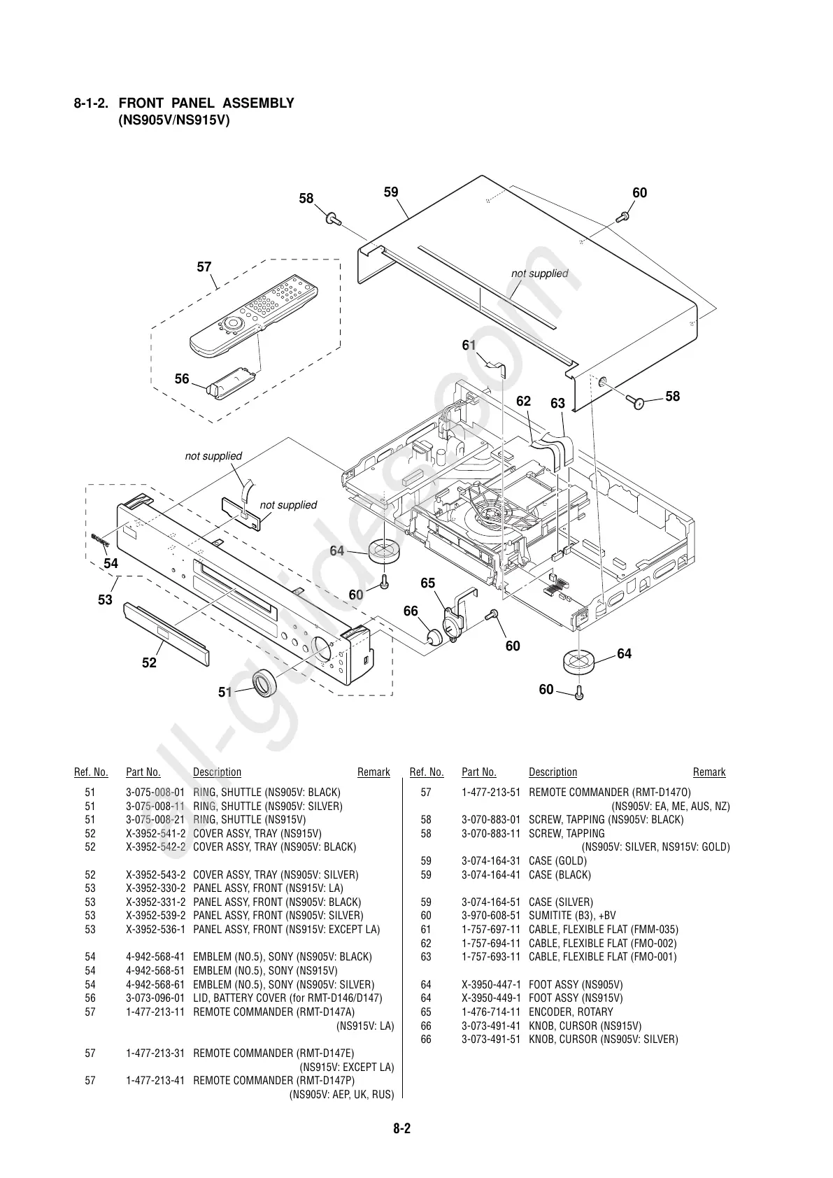 53 X-3952-536-1 PANEL ASSY, FRONT (NS915V: EXCEPT LA)