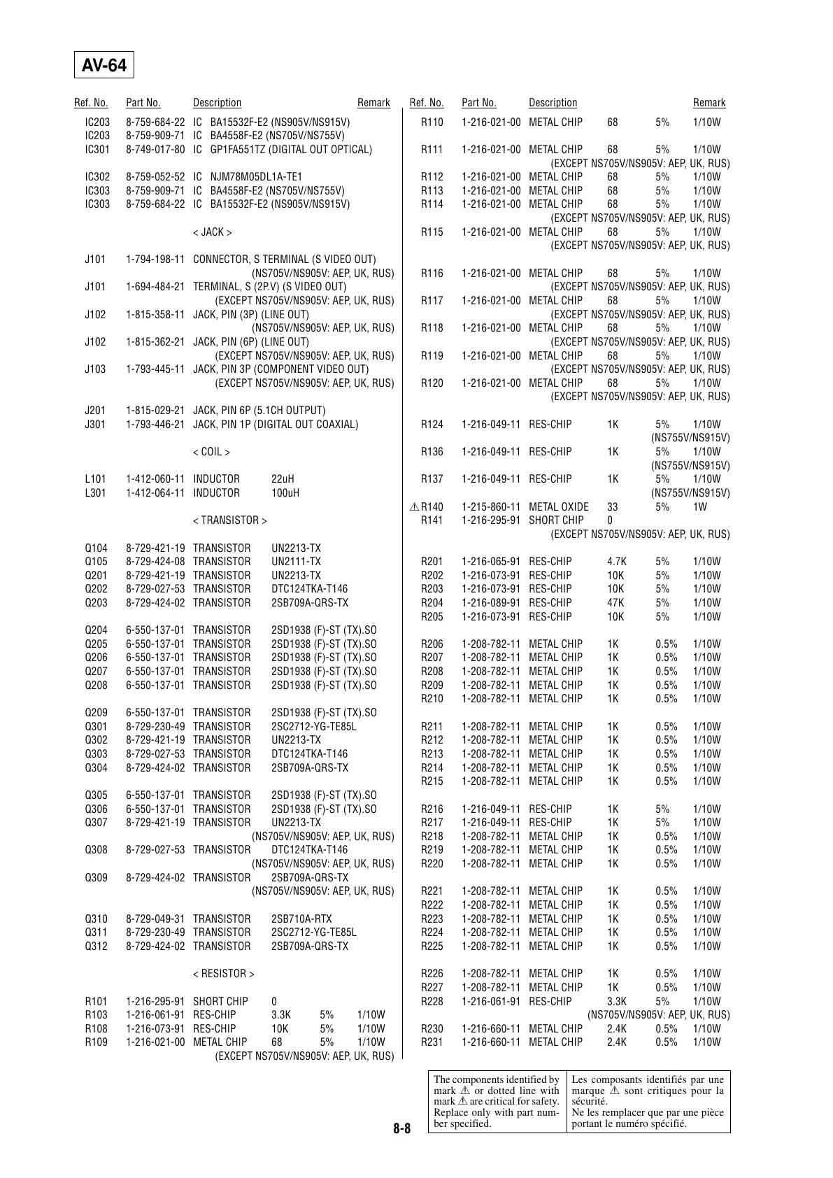 (EXCEPT NS705V/NS905V: AEP, UK, RUS)