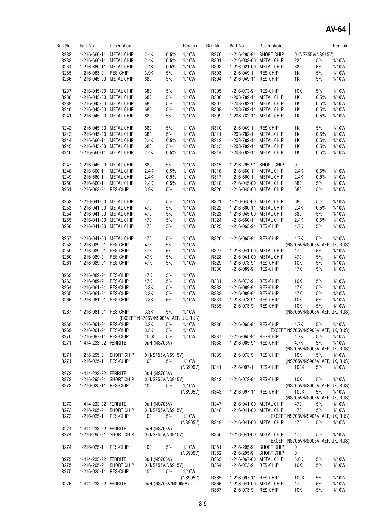 R274 1-216-295-91 SHORT CHIP 0 (NS755V/NS915V)