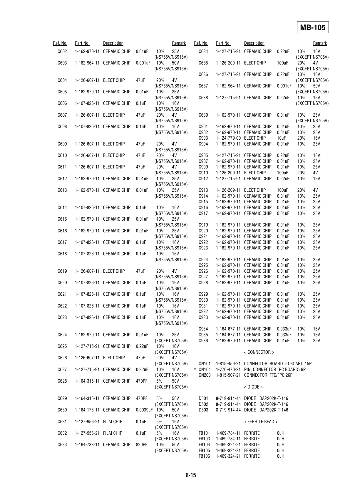 Ref. No. Part No. Description Remark Ref. No. Part No. Description Remark