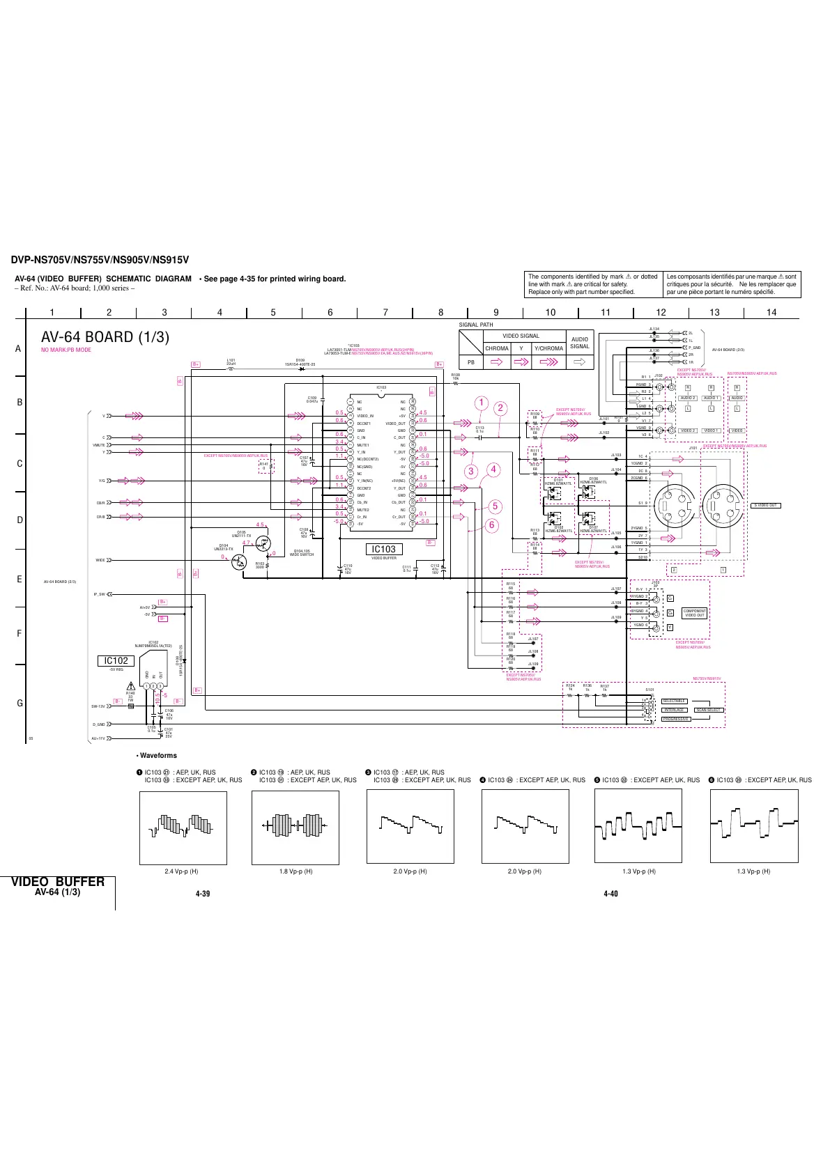 AV-64 (VIDEO BUFFER) SCHEMATIC DIAGRAM • See page 4-35 for printed wiring board.
