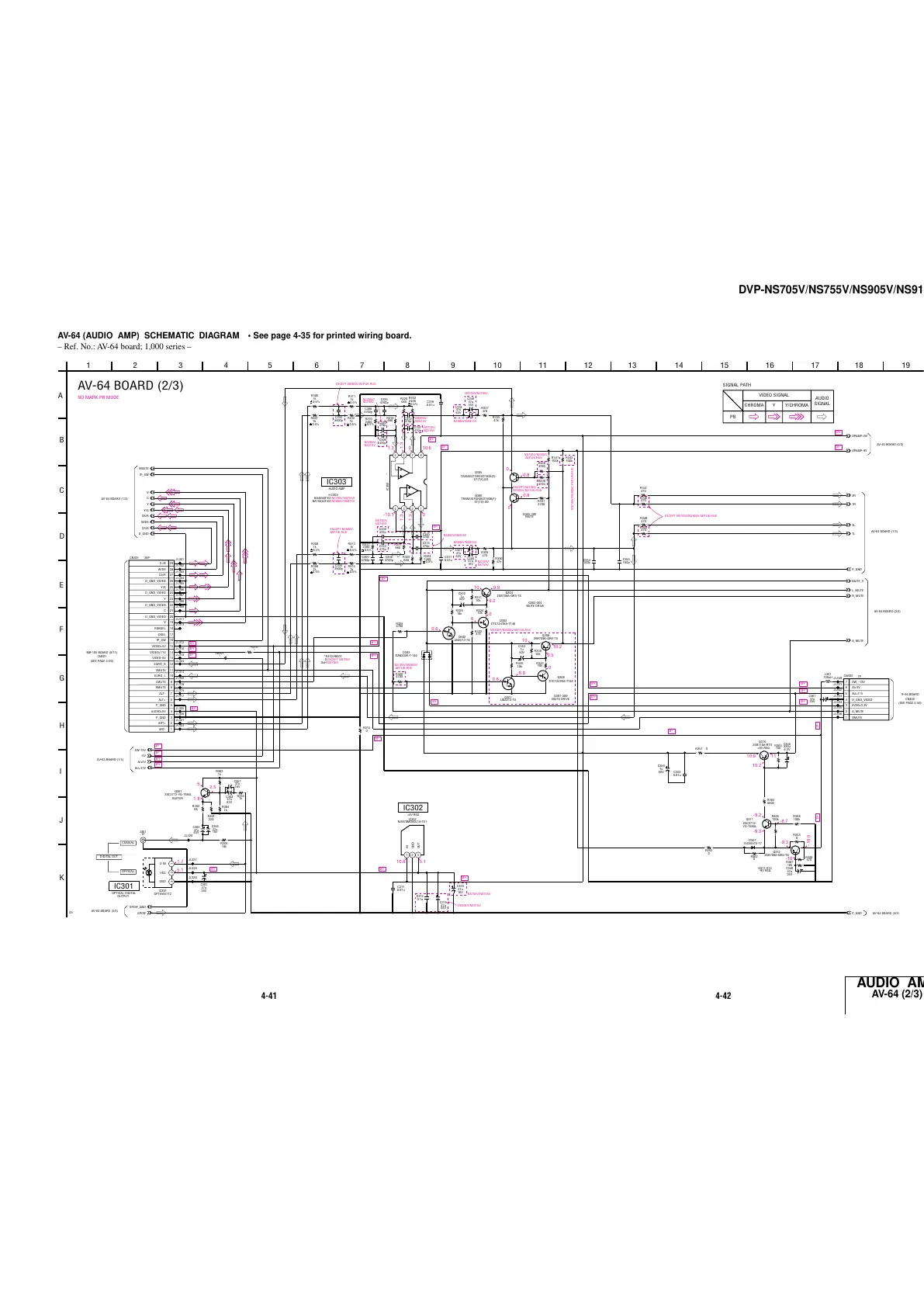 AV-64 (AUDIO AMP) SCHEMATIC DIAGRAM • See page 4-35 for printed wiring board.
