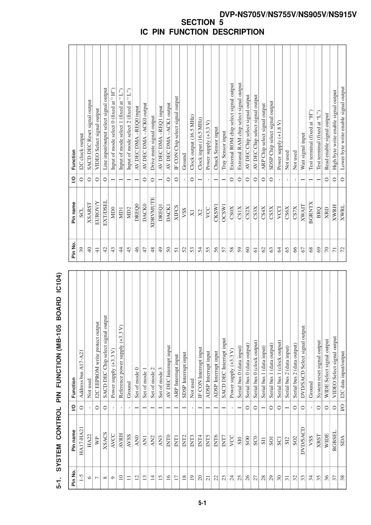 5-1. SYSTEM CONTROL PIN FUNCTION (MB-105 BOARD IC104)