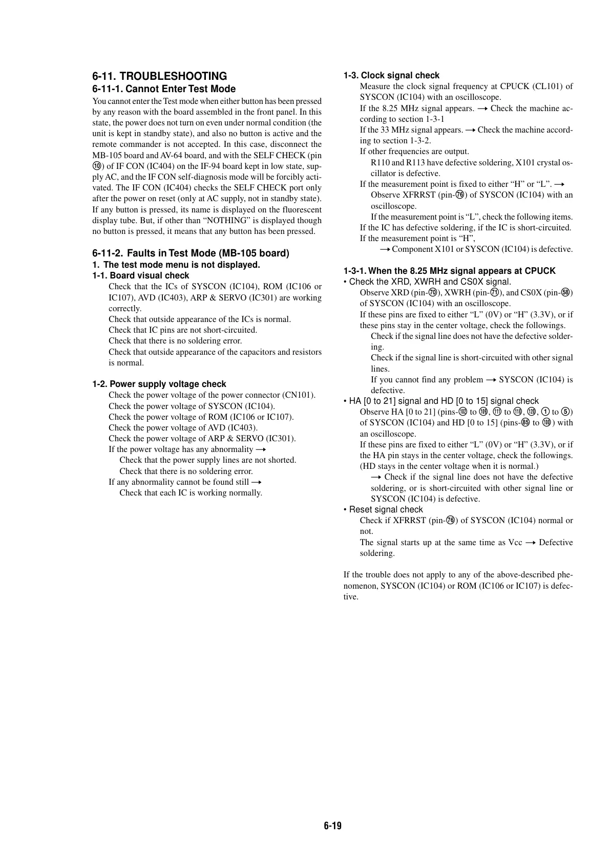 nomenon, SYSCON (IC104) or ROM (IC106 or IC107) is defec-