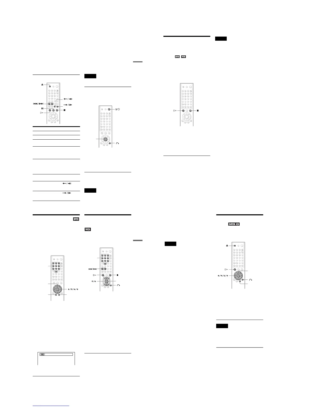 Sony RMT-D153A - Resuming Playback from the Point Where You Stopped the Disc (Multi-Disc Resume); Using the DVDs Menu; Playing VIDEO Cds with PBC Functions; (PBC Playback)