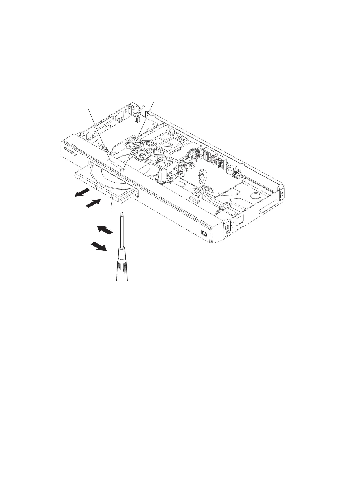 4) After removing the disc, push in the direction of arrow C until the tray fully in.