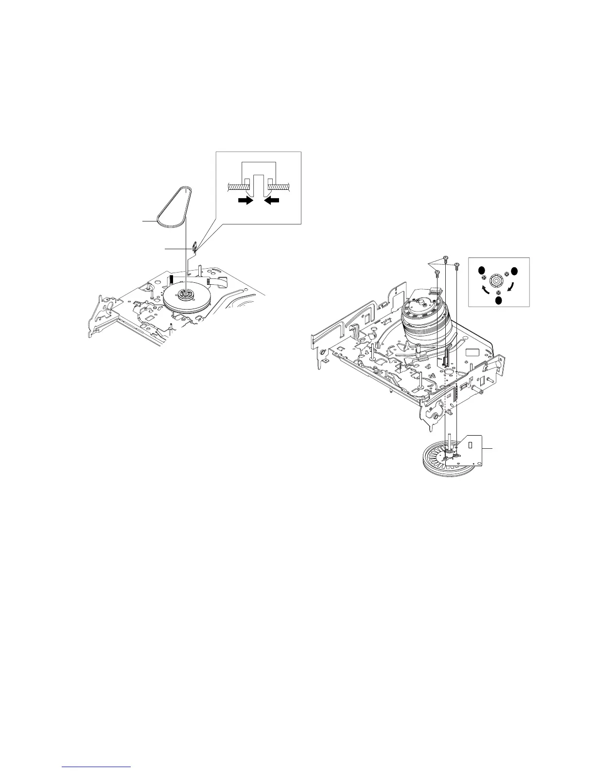 1) Match the 3 holes of Ass’y Motor Capstan 2 to the 3 holes of