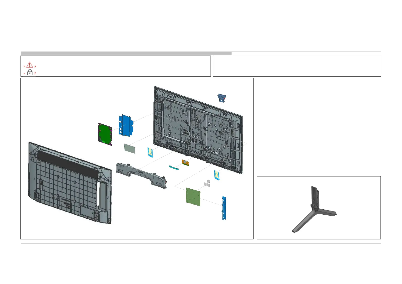 Place the TV set facing downwards on a stable, level surface before disassembly and assembly of parts.