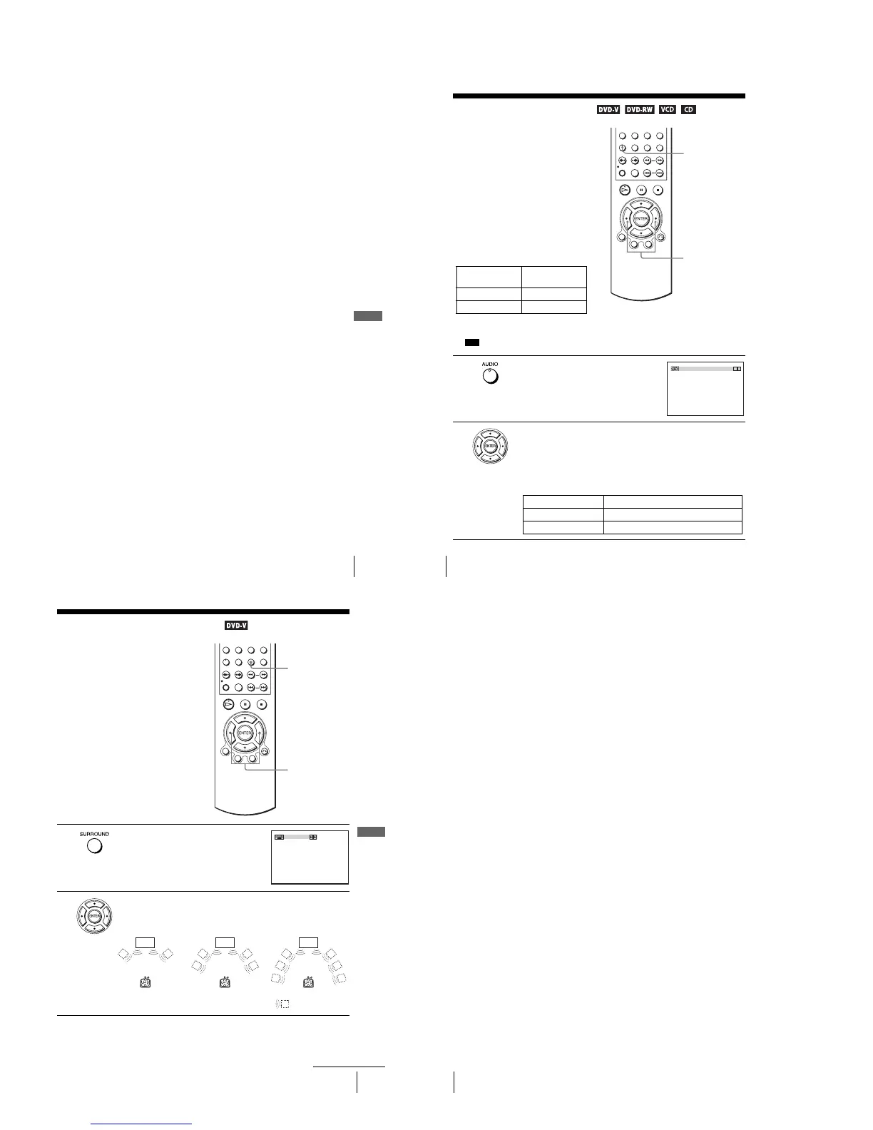 •When the playing signal does not contain a signal for the rear speakers, the surround effects