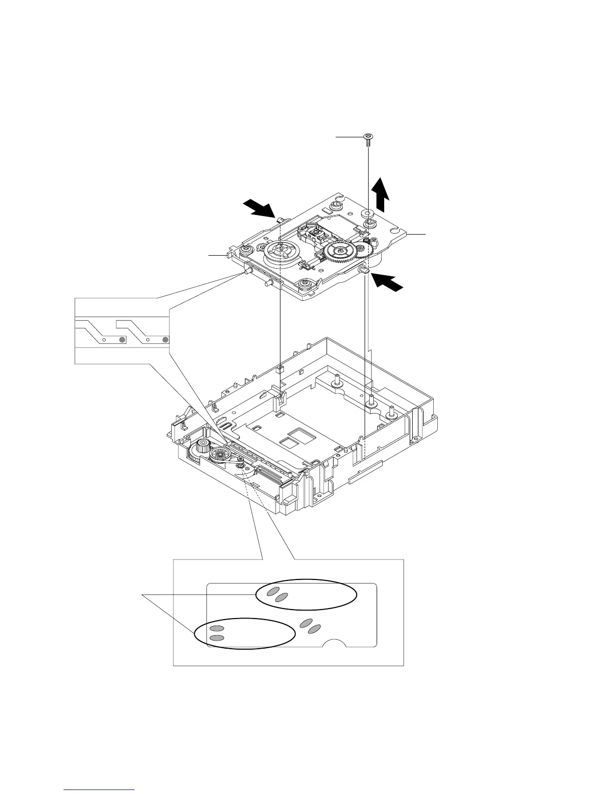 3) When the Ass’y P/U Deck 3 lift up a little, push Chassis Sub in the direction of arrow “B” and lift up the Ass’y P/U Deck 3.