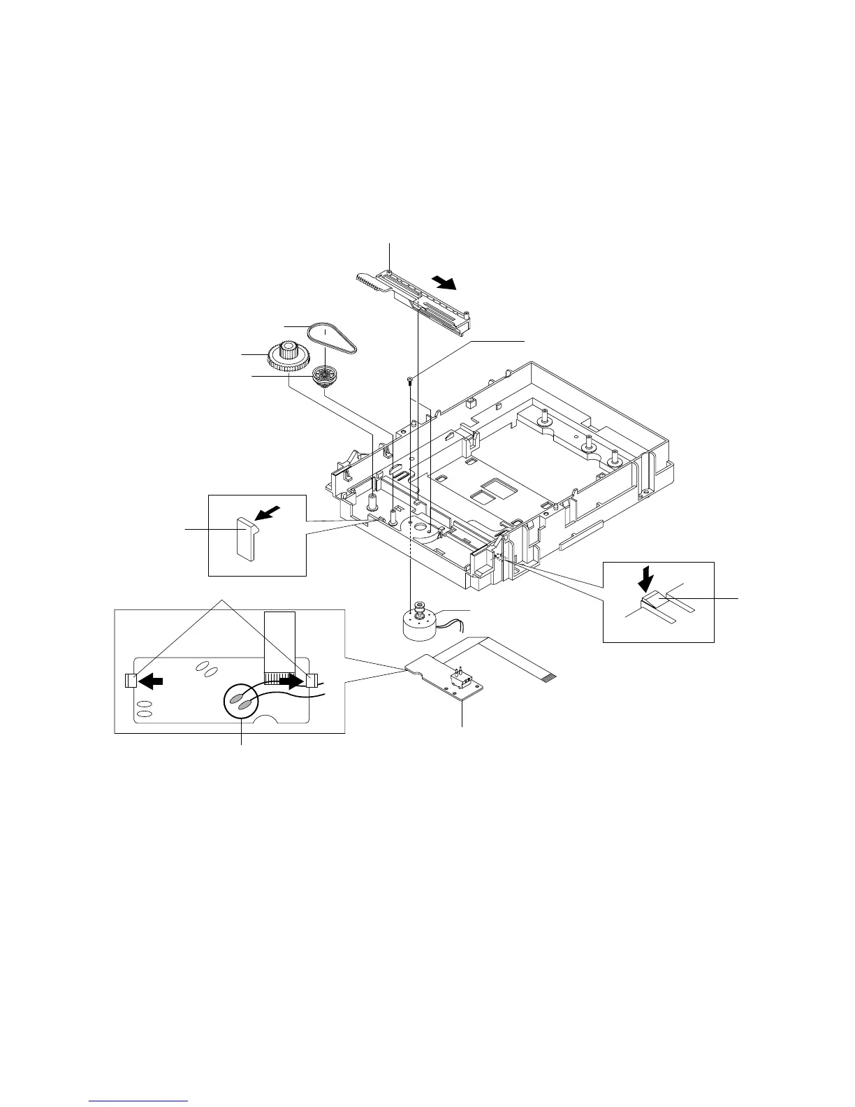 6) Push the 1 Hook 9 in the direction of arrow “D” and lift up the Gear Pulley 0, Gear Tray qa.