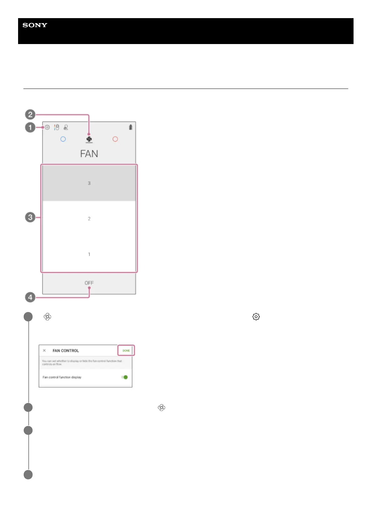 CONTROL] - [Fan control function display] switch, and then tap [Done] on the upper right corner of the