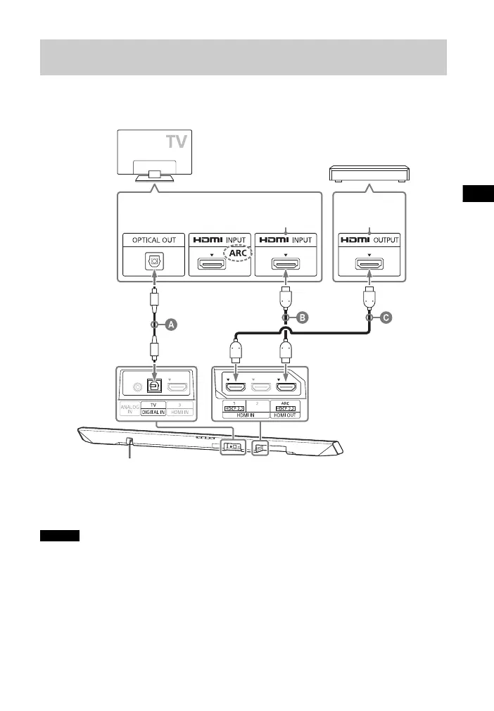 • La prise HDMI 1 INPUT de la barre de haut-parleurs est compatible HDCP 2.2.