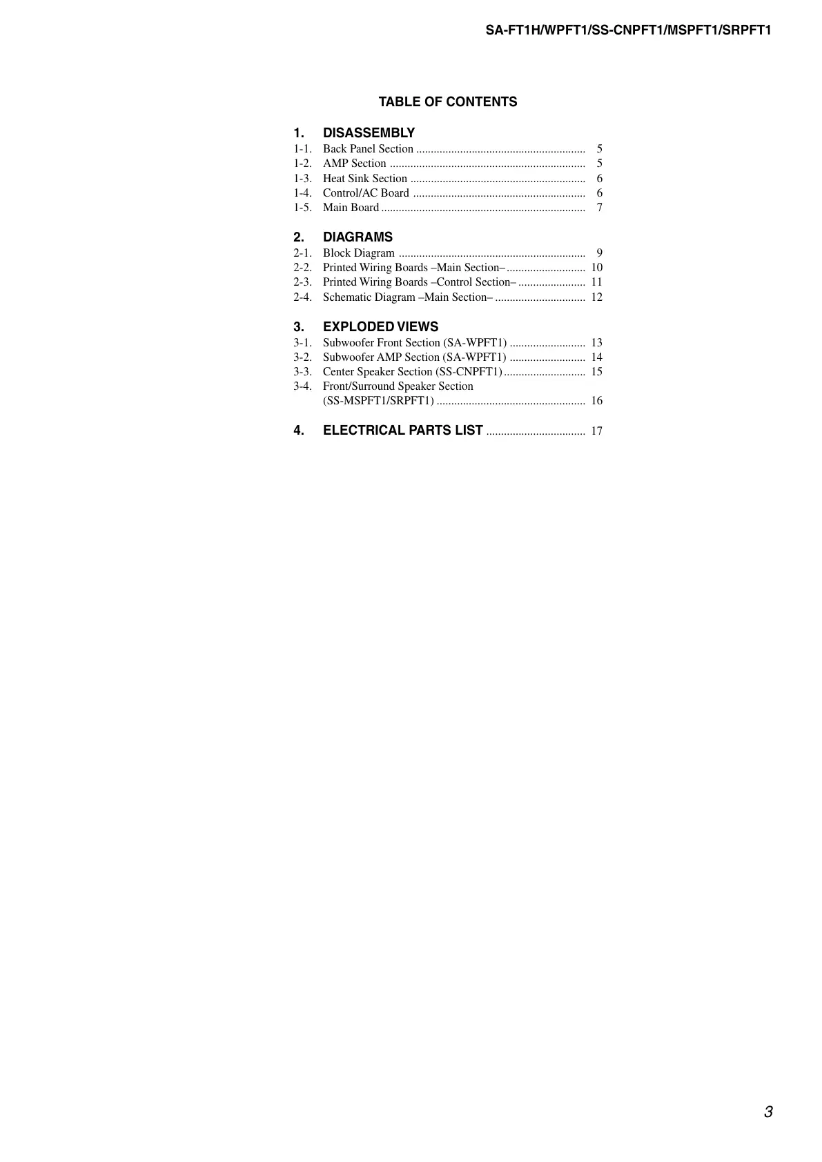 3-2. Subwoofer AMP Section (SA-WPFT1) .......................... 14
