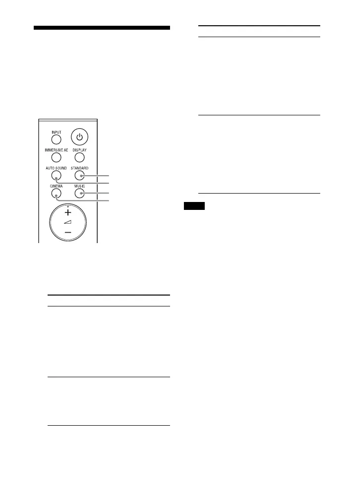 1 Press one of the sound mode