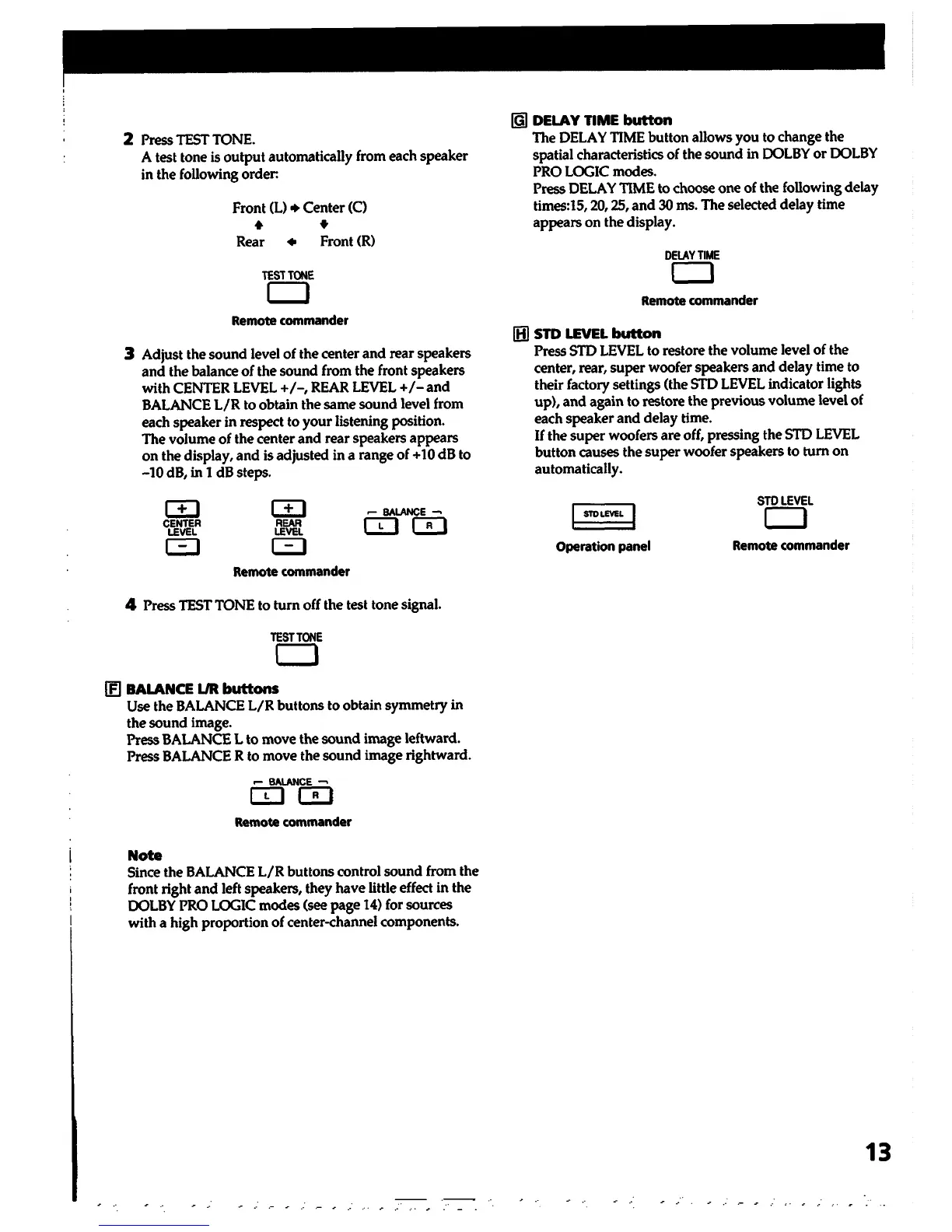 Sony SA-VA1 - Advanced Audio Adjustments; Test Tone Operation Guide; Delay Time Settings; Balance Adjustment