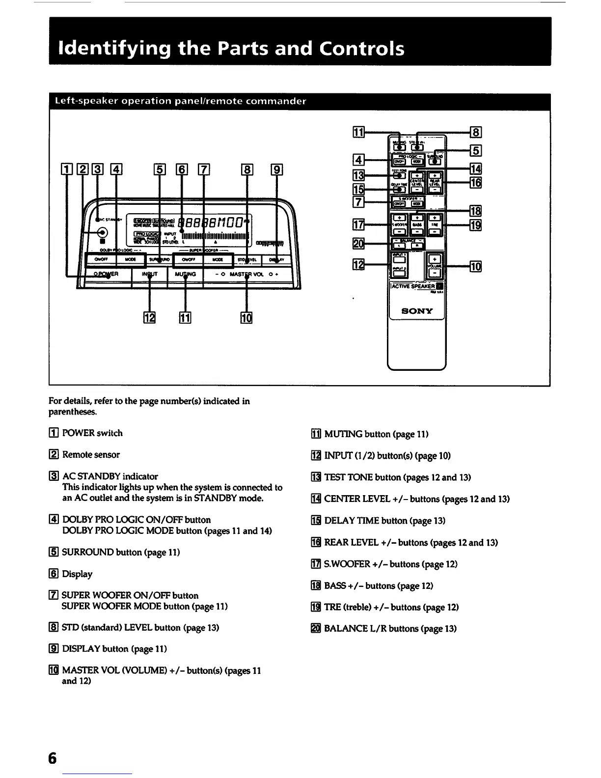 Sony SA-VA1 - Left-Speaker Operation Panel;Remote Commander; Identifying the Parts and Controls