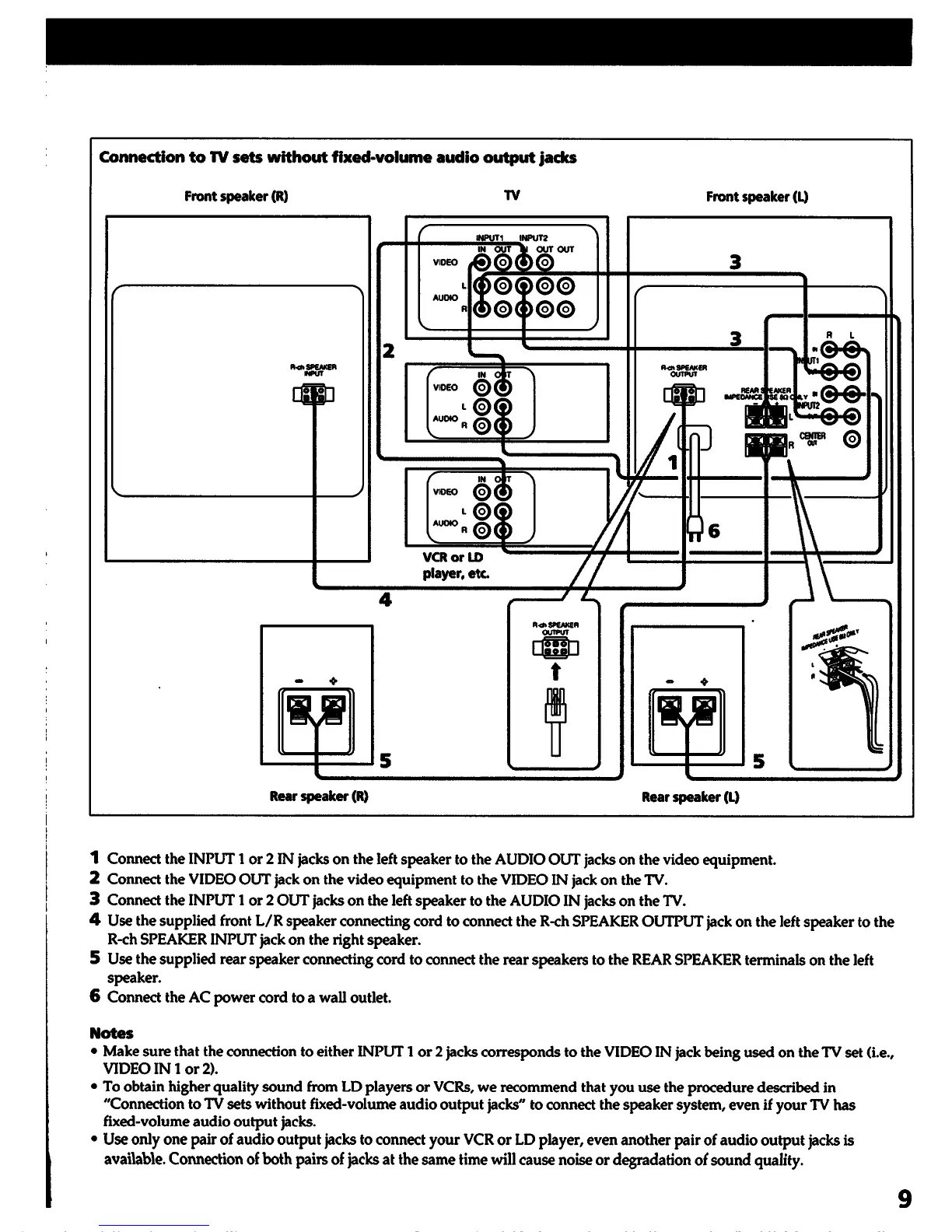 Sony SA-VA1 - Alternative TV Connection Methods; Connecting to TV without Fixed Audio Output