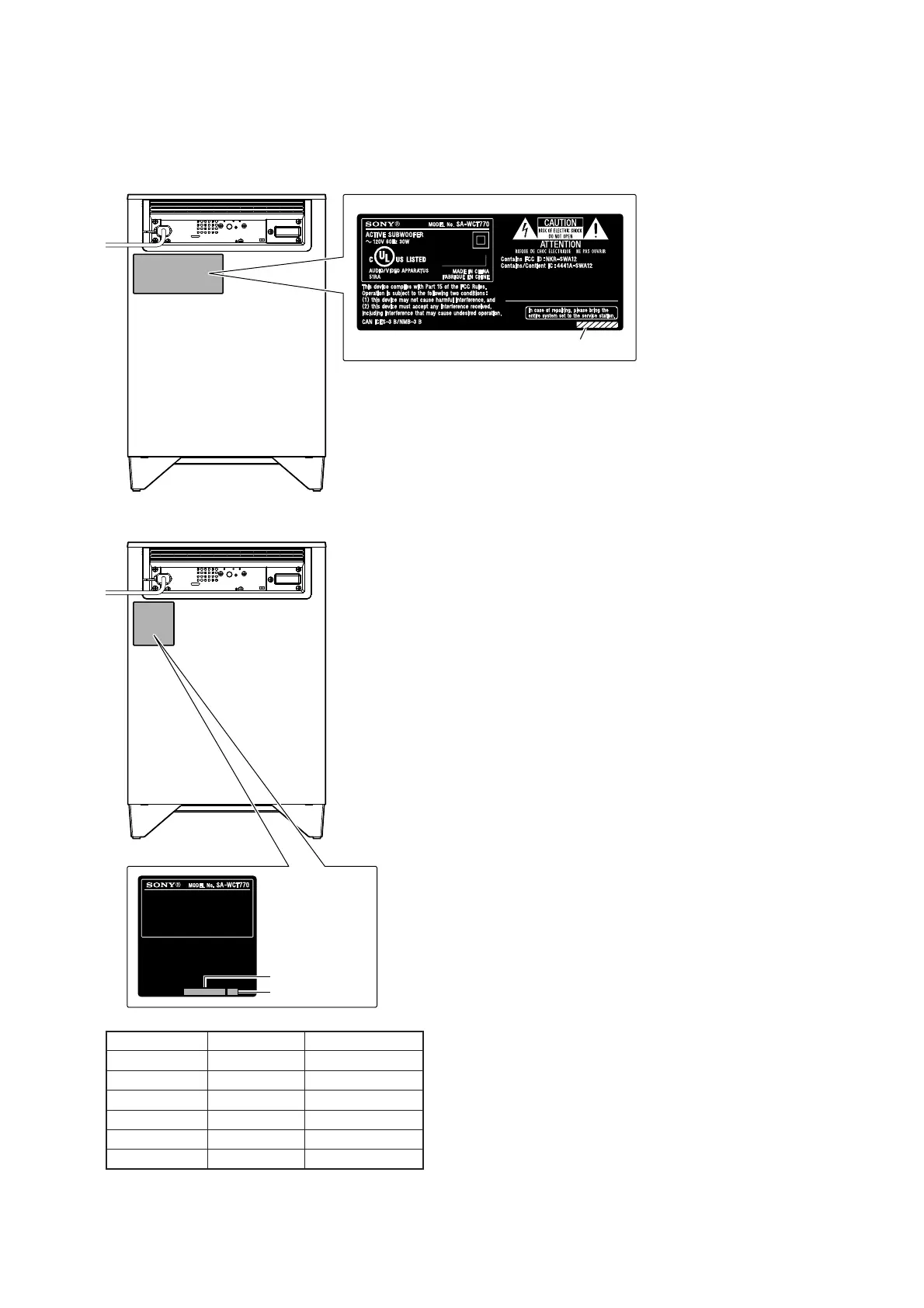 Sony SA-WCT770 - MODEL IDENTIFICATION; Model Number Label; Destination Code Mapping