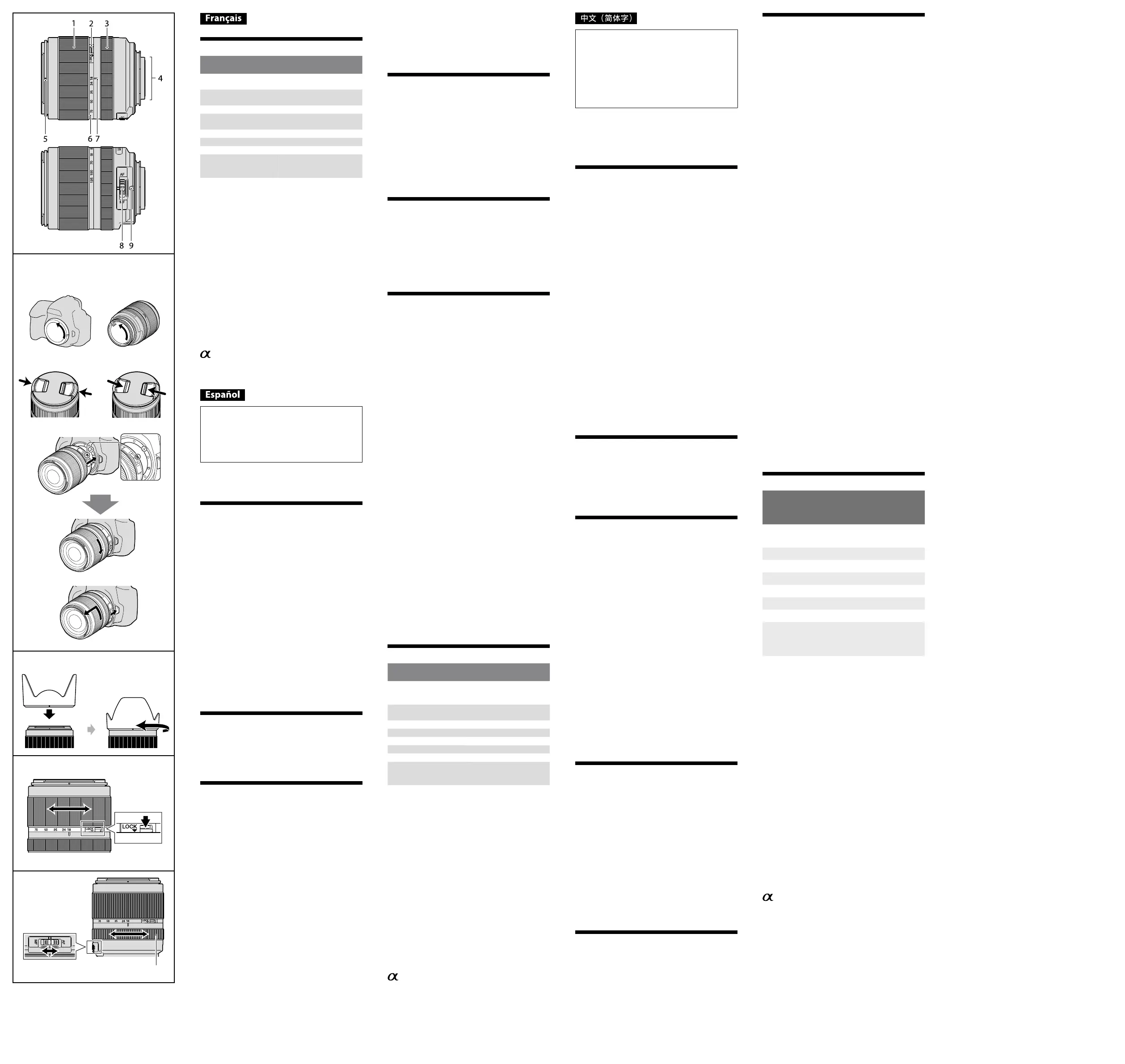 d’objectif arrière (1), Parasoleil (1), Jeu de documents
