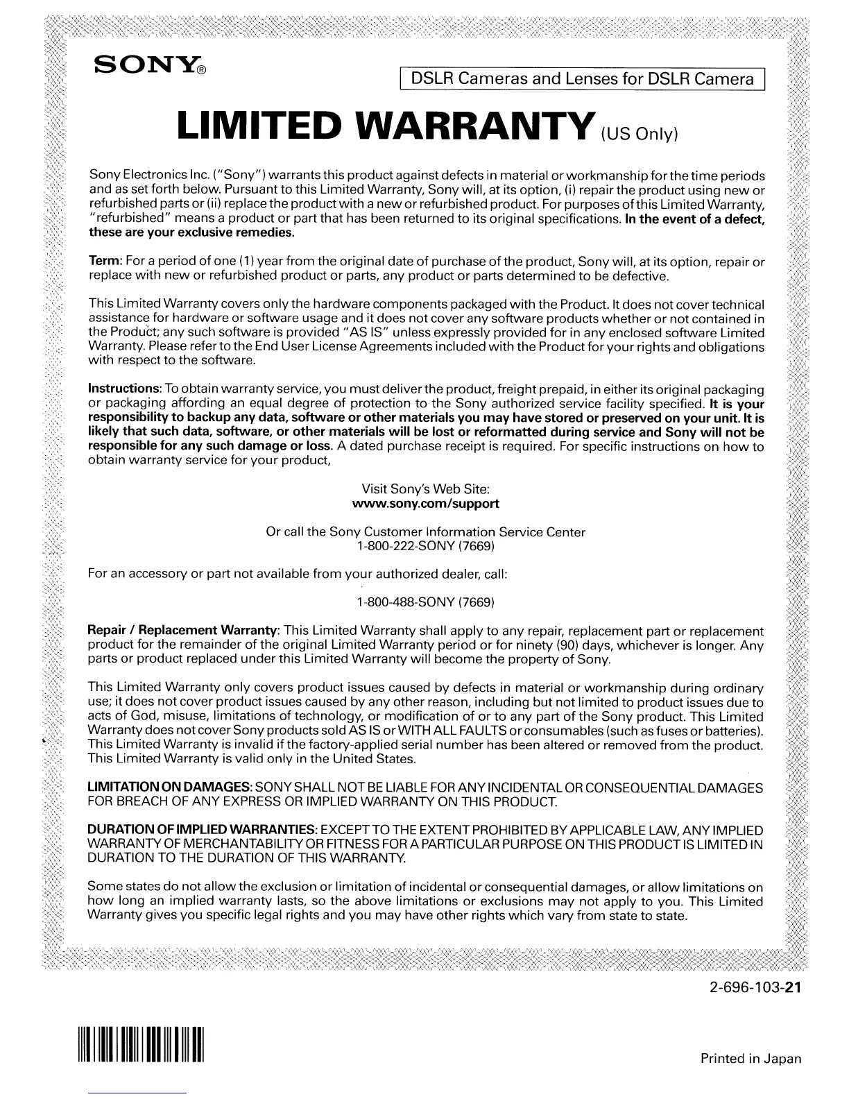 1-800-488-S0NY (7669)