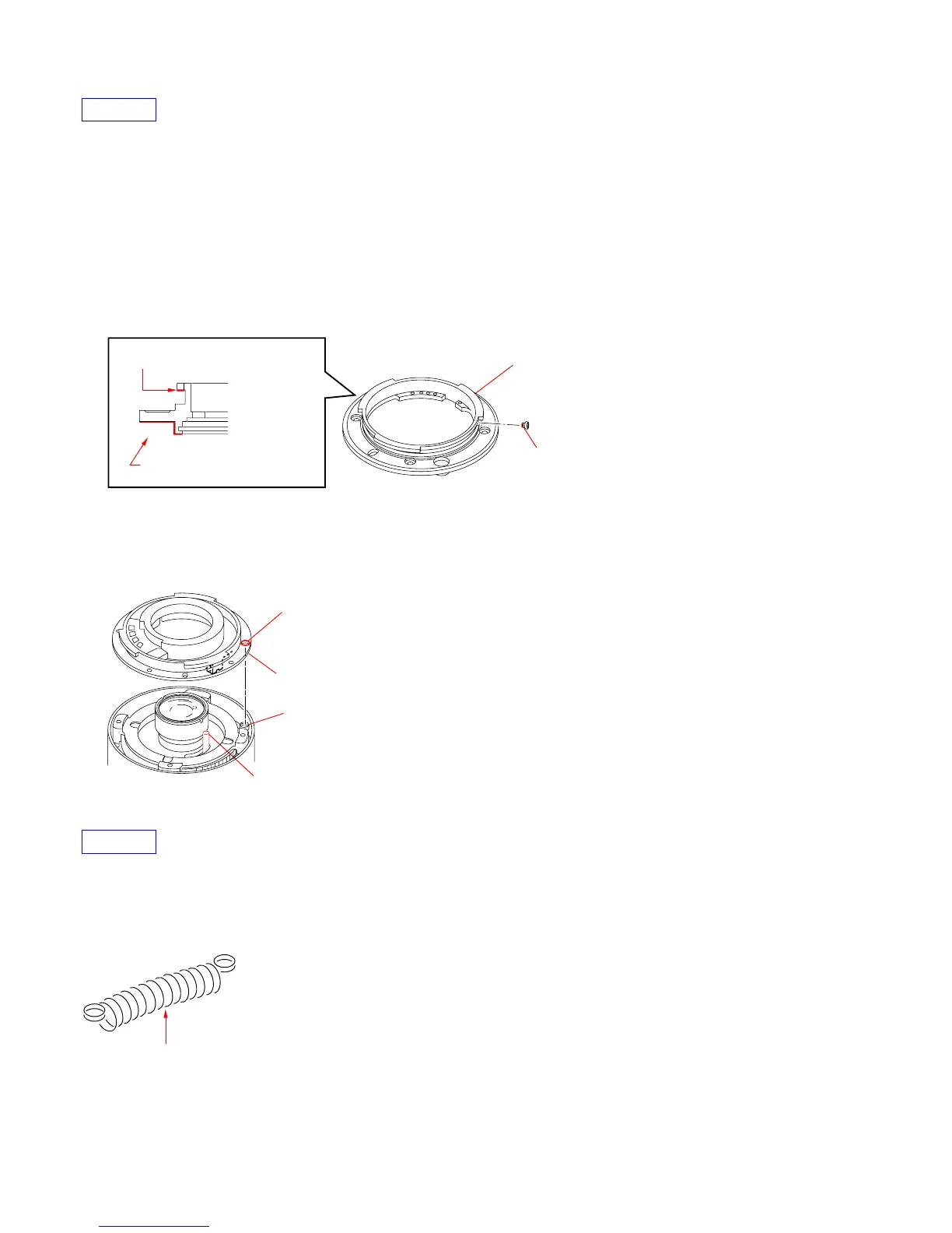 2. Apply the anti-diffusion agent (A-20) and grease (G-85) to the instruction portions of the lens mount reveting block.
