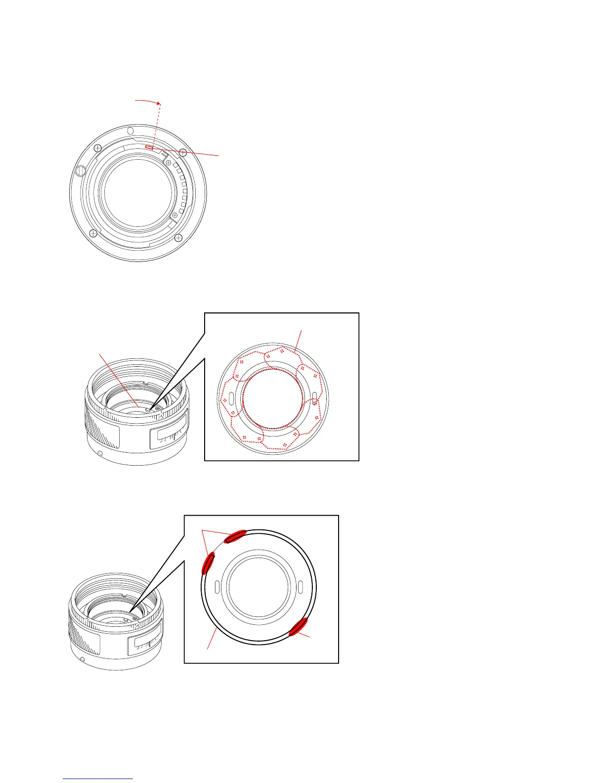 4) Turn the aperture unit holding ring to adjust the position that the iris feather unit are hidden into the edge completely.