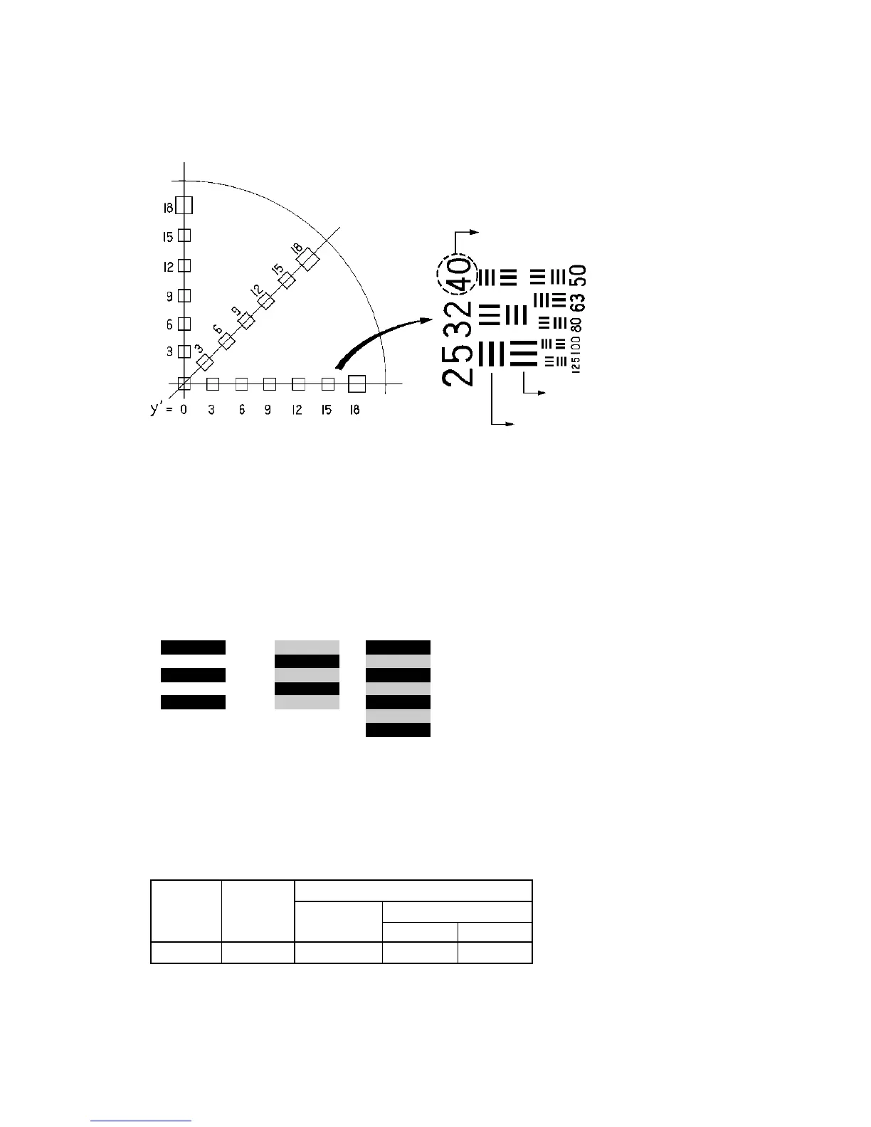4) Check that the all readings (y’= 0, saggital (S) and meridional (M) at y’= 15) is within the specification of the Table 4-3-2.