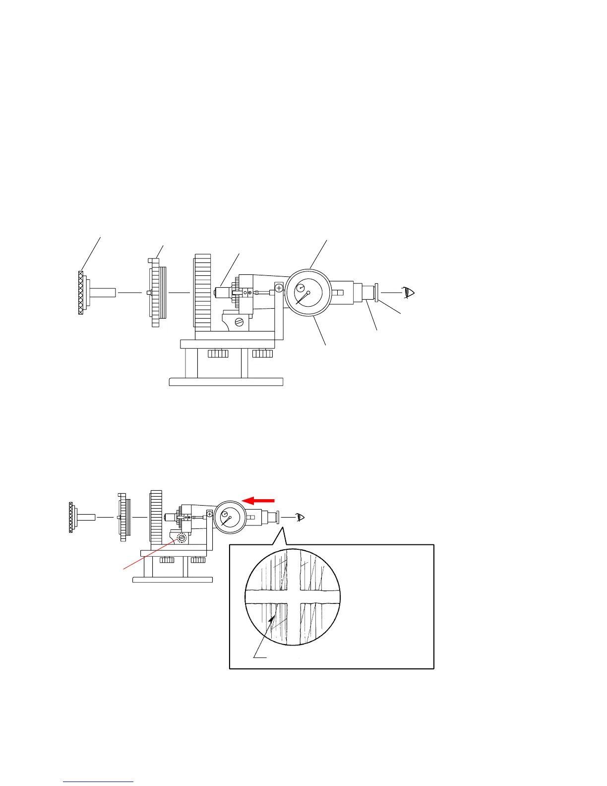 4) Turn the focusing knob of the flange back tester so that fine scratches on the flange back gauge (43.50mm) is the sharpest.