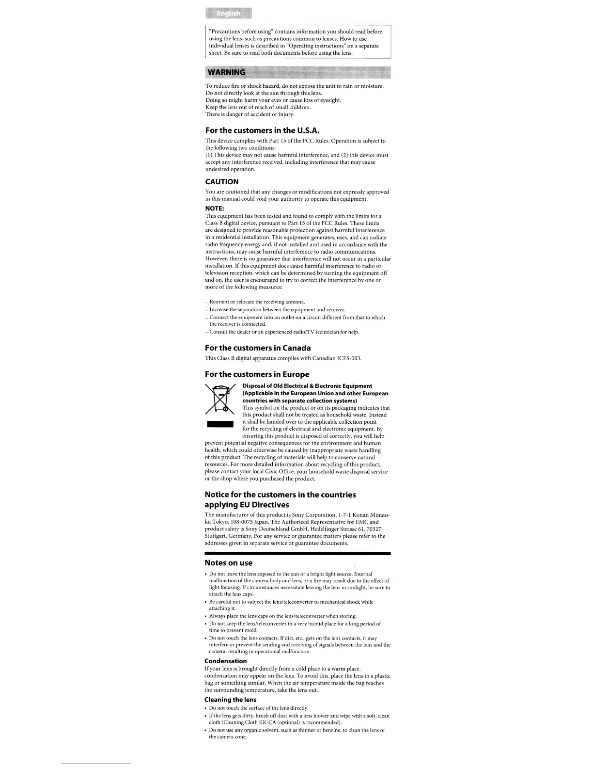 using the lens, such as precautions