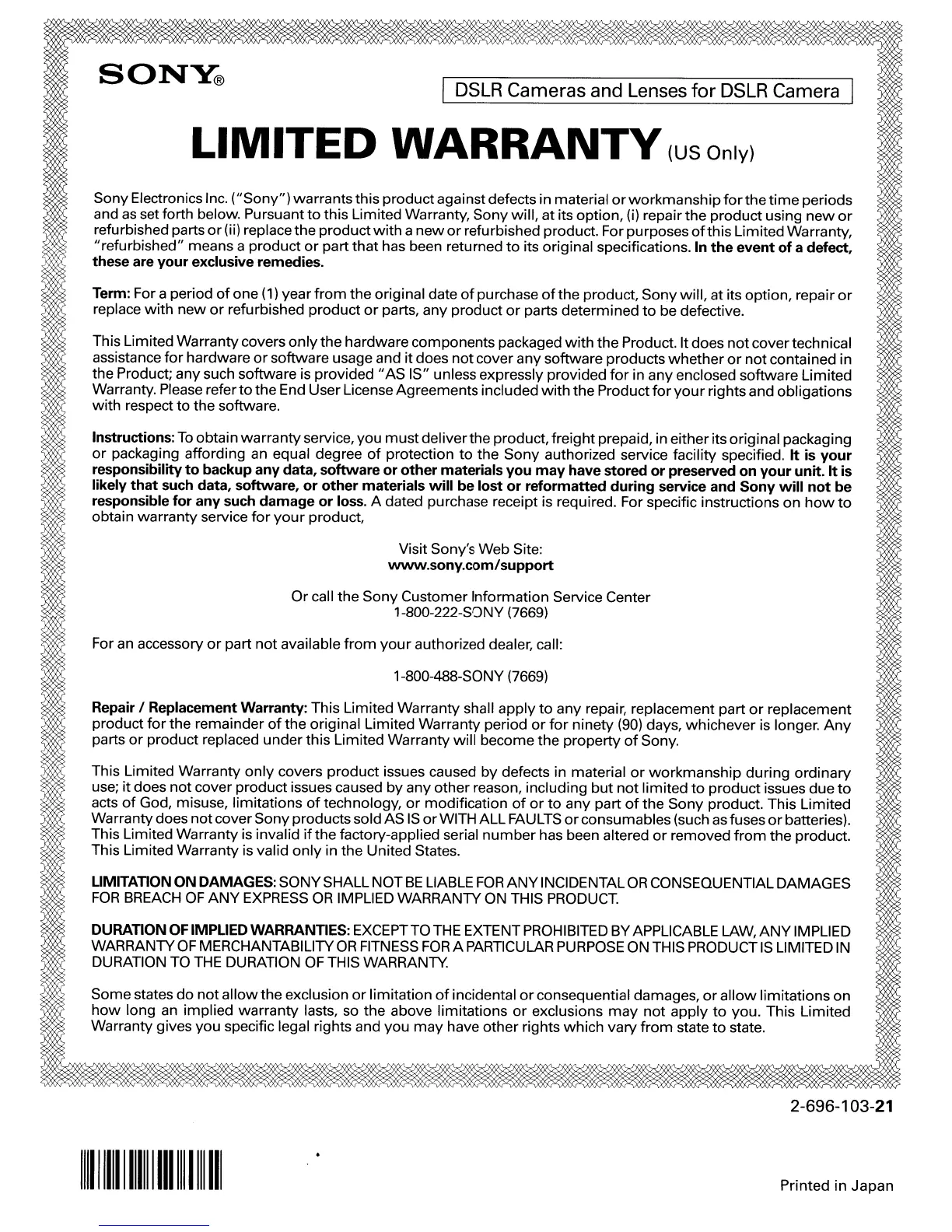 this Limited Warranty, Sony