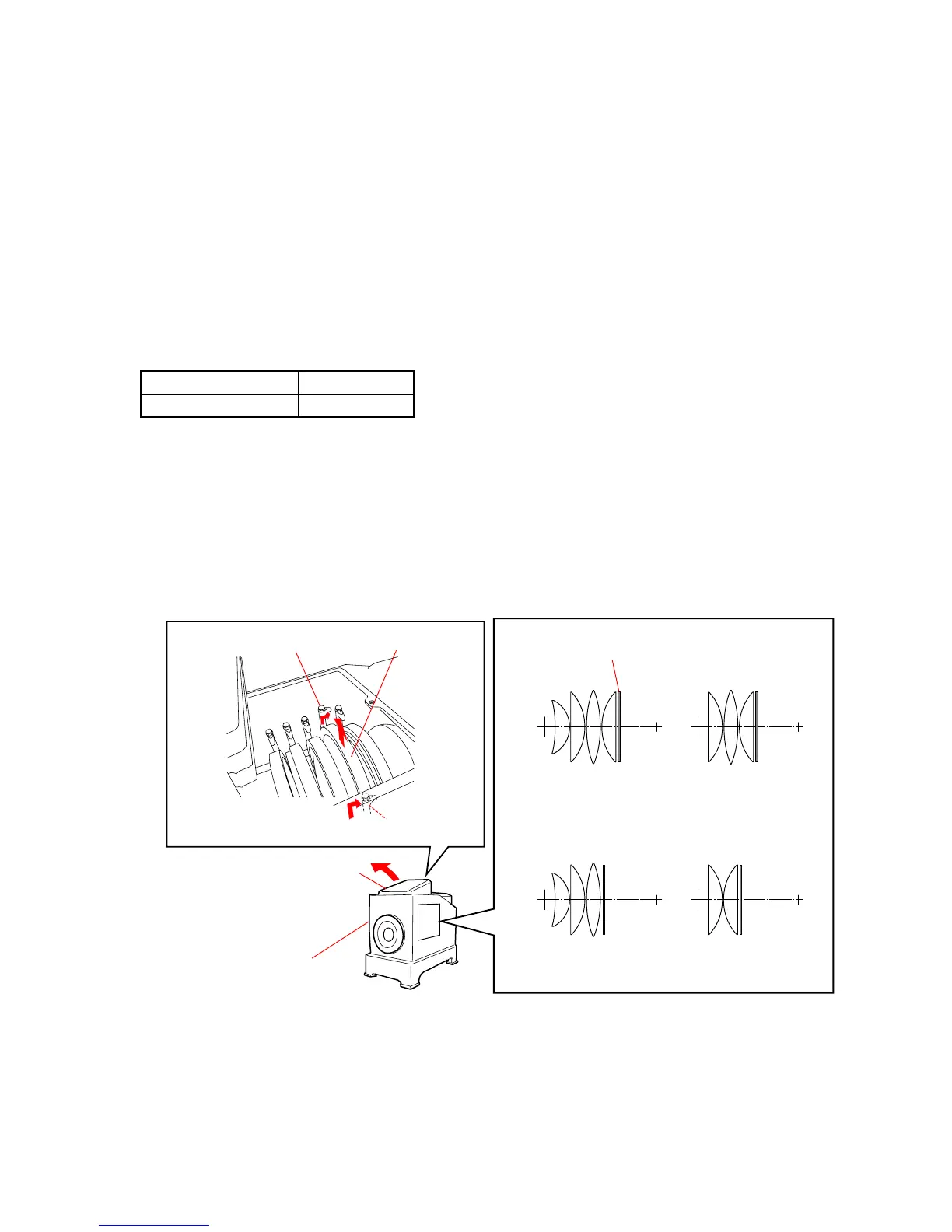 1) Perform the following steps (1) to (3), and incorporate the internal lenses of the lens test projector according to the checking focal-