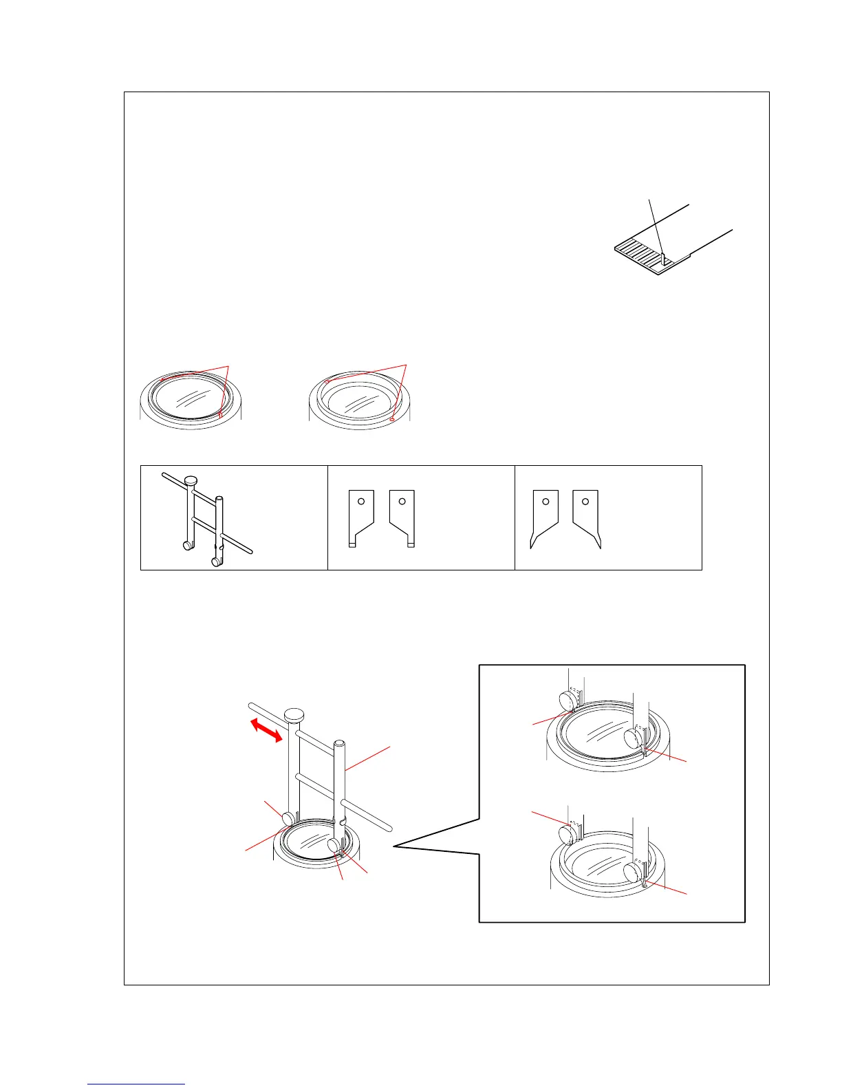 In case of the following notches or holes are located in the lens block, etc during disassembling/